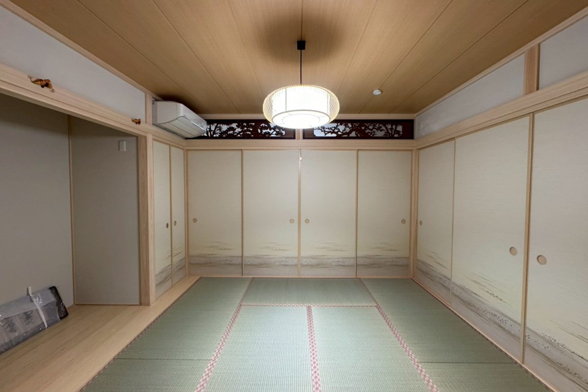 新しい建具や畳と美しく調和し、住まい全体に歴史と温もりを感じられるポイントとなっています。
